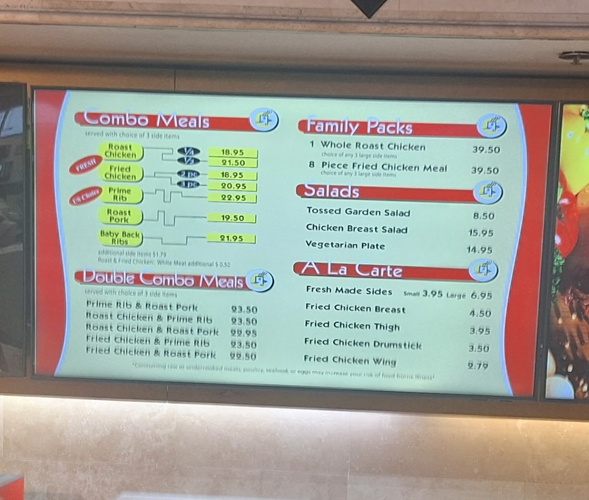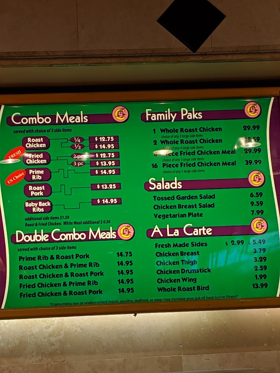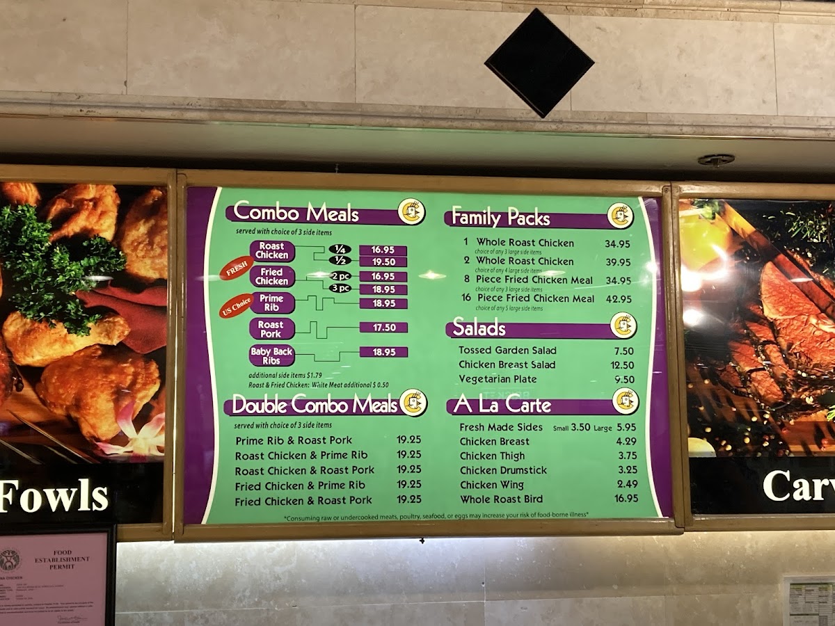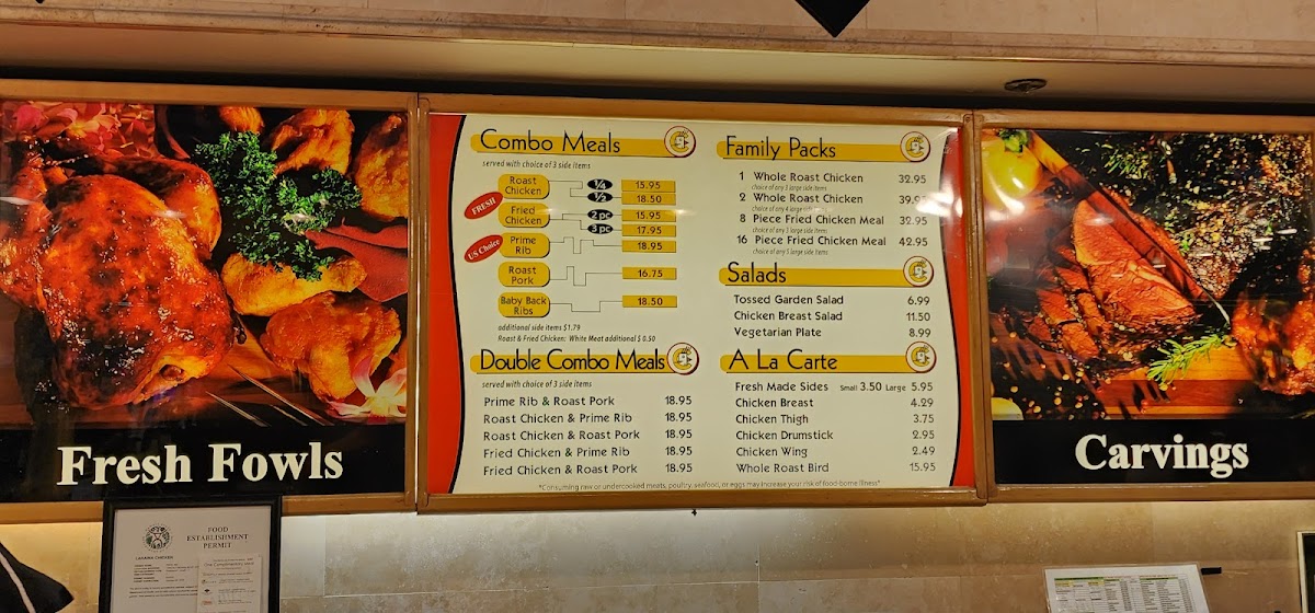 The menu at Lahaina Chicken Company offers a variety of comforting and flavorful options, perfect for any craving. Their Combo Meals feature delicious choices like Roast Chicken, Fried Chicken, Prime Rib, Roast Pork, and Baby Back Ribs. For those who want a little more variety, the Double Combo Meals combine two meats, such as Prime Rib & Roast Pork or Roast Chicken & Prime Rib, offering an indulgent feast. Larger groups or families can opt for Family Paks, like the 1 Whole Roast Chicken or the 16 Piece Fried Chicken Meal, providing ample servings for sharing. For lighter options, the Salads menu includes the fresh Tossed Garden Salad, the hearty Chicken Breast Salad, and the wholesome Vegetarian Plate. There are also A La Carte selections, including Fresh Made Sides, and a variety of chicken cuts such as Chicken Breast, Chicken Thigh, Chicken Drumstick, and Chicken Wing. With a wide range of choices, Lahaina Chicken Company ensures there’s something to satisfy every taste.